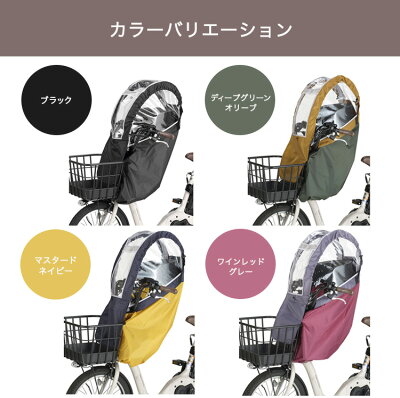 品質表示 本体:ポリエステル、透明部分:PVC 取り付け場所 自転車の後付け前用チャイルドシート(自転車のフロントチャイルドシート/自転車の後ろ用子供乗せ) 特徴 自転車のチャイルドシートを雨から守るレインカバーです。