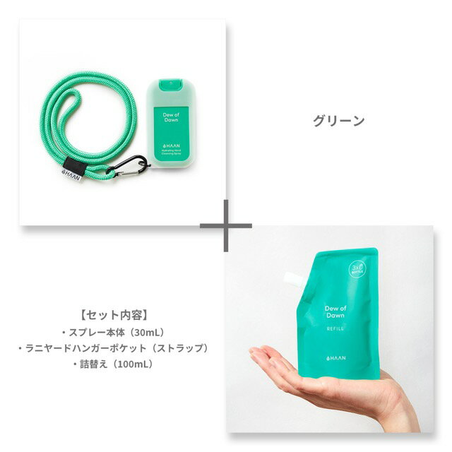 こちらのハーンハイドレーティング ハンドクレンジングスプレー デューオブドーン 本体&詰替セット (ラニヤードハンガーポケット付き)【全5色】はギフト包装ができません。
