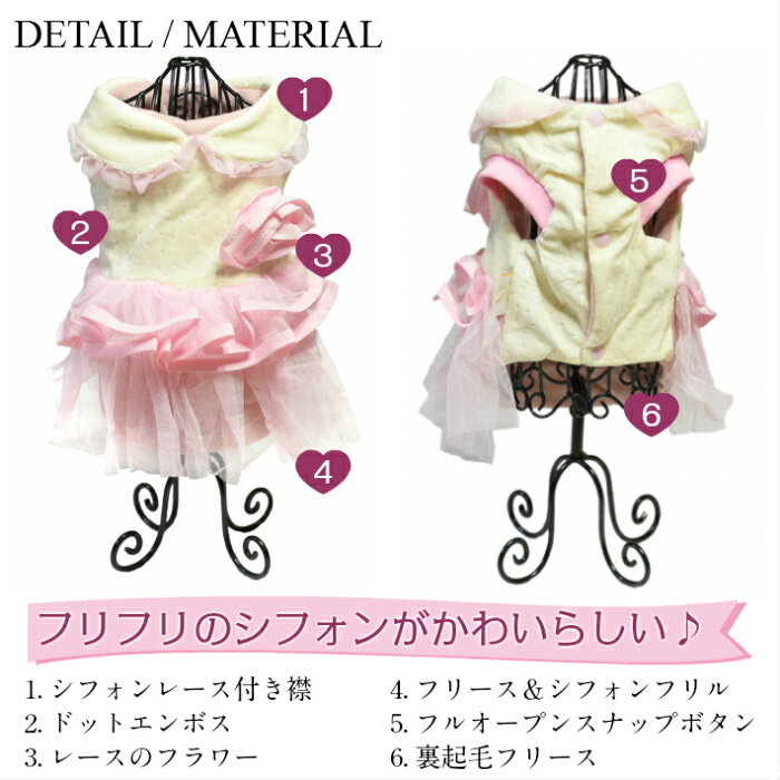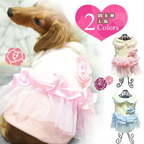 【犬 服】 【秋 冬】 レース フラワー シフォン フリル ワンピース ドッグウエア 【トイプードル/チワワ/ヨークシャテリア/Mダックスなどの小型犬・猫用 ペットウエア】