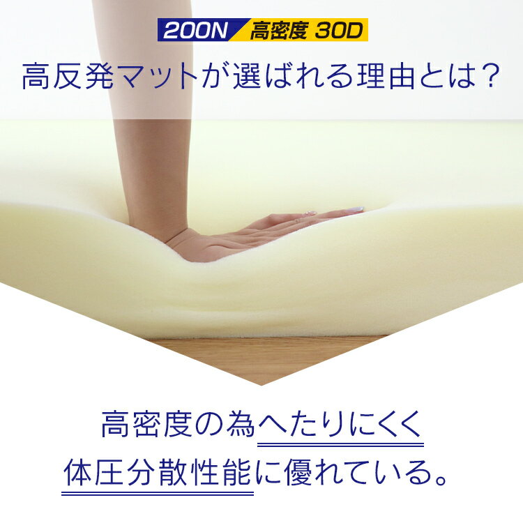 高密度30D!こだわりの硬さ200N! 厚みたっぷり10cm! 適度な硬さで身体をしっかり支える、高反発マットレスです。