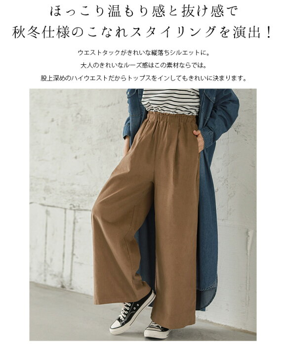 コーデュロイ ワイドパンツ パンツ レディース ウエストゴム ウエストタック 楽ちん ボトムス カジュアル ガウチョパンツ ロング 大人 メール便 2022春夏新作 【lgww-at4964】【予約販売:9月27日入荷予定順次発送】【送料無料】メ込2